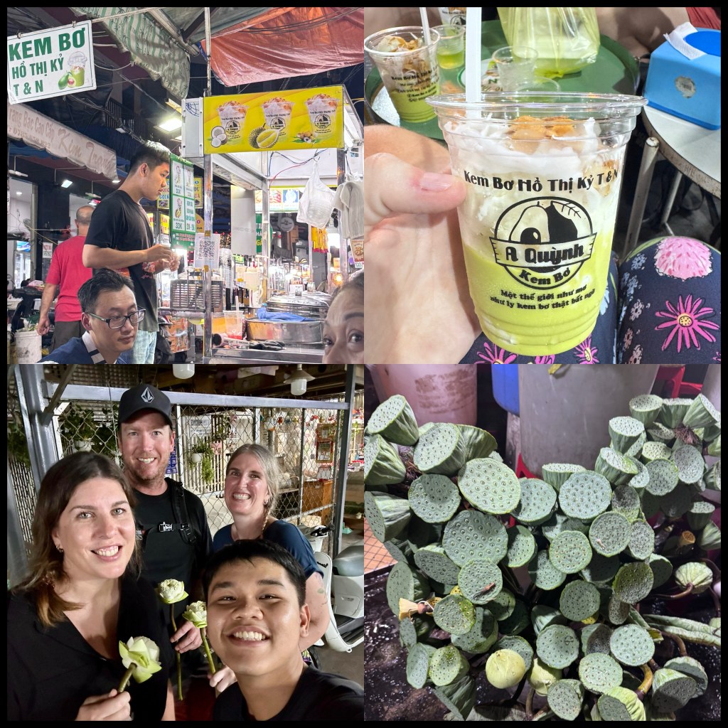 We are in Saigon to meet up with friends and celebrate a belated 40th. We started our short visit with a street food man walking food tour! We have done this tour before but it’s one of the best ones we have ever done – in any country – and is also one of the few walking vs scooter tours….important for me who can’t get on a scooter. You can book here: https://streetfoodman.com/our-tours/private-walking-tours