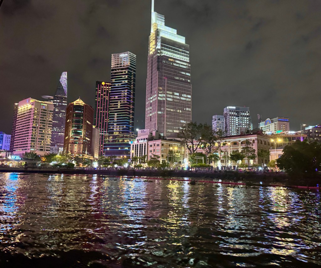The river cruise was great. They met us at the ferry terminal in District 1 (3 min walk from the hotel) and off we went! We passed by landmarks including the Tran Hung Dao Statue, Hotel Majestic, Dragon Wharf, Bitexco Financial Tower, and Mong Bridge…all of which were beautifully lit!
