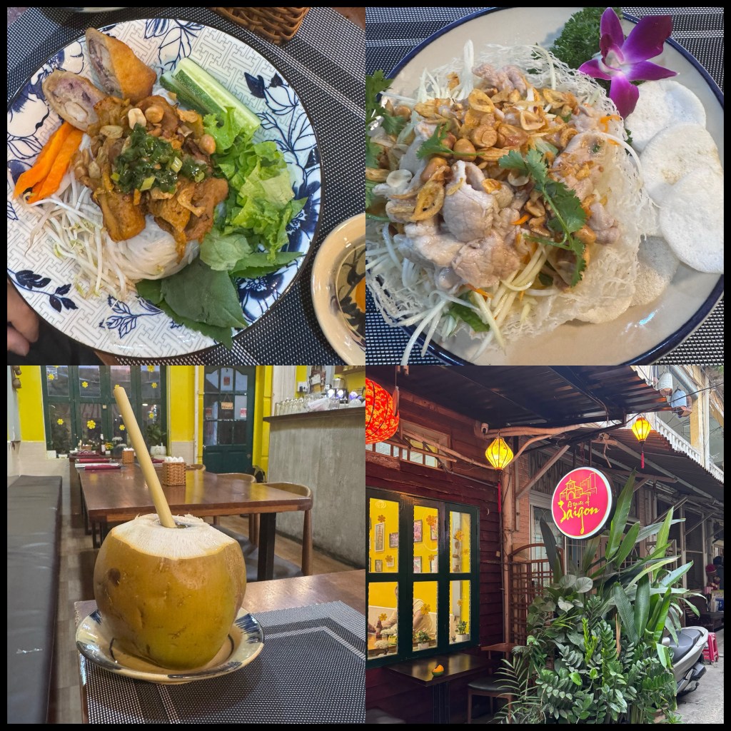 A taste of Saigon – old town. A little pricier than other “hole in the wall” local places but absolutely delicious food and the opportunity to try some Saigon specials including broken rice and BUN THIT NONG SAIGON which is noodles, peanuts, salad, fried spring rolls and pork.