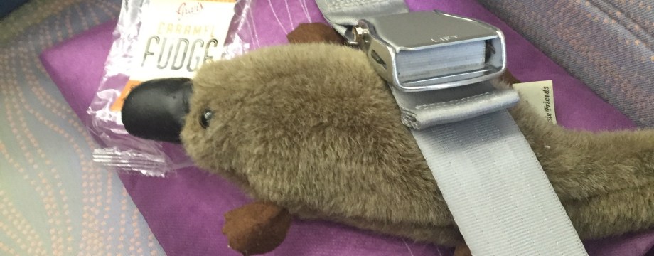 The flights were mostly uneventful except for my feet swelling up like balloons (never happened before) and lots of limping around the plane and the Emirates business lounge in Dubai as a result. On both of the long haul flights we had an empty seat in our row which was great, gave us that little extra bit of space to spread out in. We both managed some sleep on the 14.5hr flight, although I got more than B…mostly due to using travacalm to zombify myself. Drooly Mel is so attractive. Percy also had a great time flying Emirates (Qantas codeshare) for the first time.