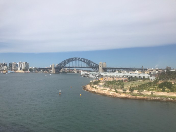 We boarded the Pacific Eden at White Bay Cruise Terminal at 12:30pm. The check in process was pretty simple: ticket + ID + credit card to link to cruise cards and we were ready to board. The departure through Sydney Harbour was smooth and we had the good side of the boat with great views off our balcony.