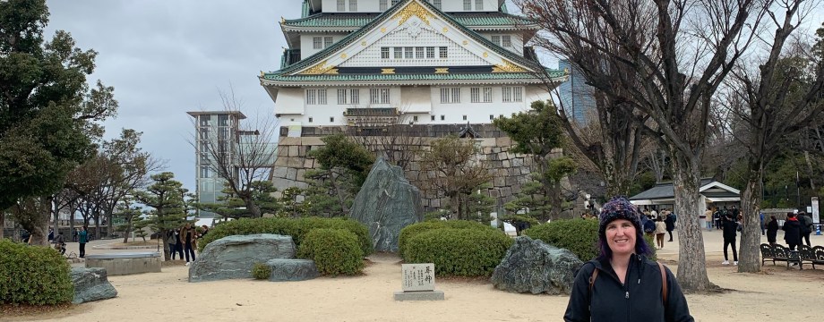 After our early lunch (¥750 for one savoury pancake split between us) we caught the nearest metro train to Osaka Castle and did some exploring there. The sun had well and truly gone by this point and all the photos are quite grey. Osaka Castle is quite different to the other ones we have seen in Tokyo, Kyoto and Nara because it was fully destroyed about 6 different times since the 1500s so has been rebuilt from photos and pictures each time! This means on the inside it has very little old world charm as it was rebuilt in the 1950s to more modern design and construction standards.