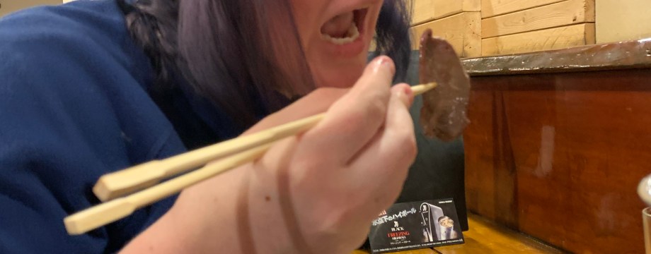 You basically order small plates of different meats and then cook it yourself on a personalised bbq at your table. Awesome! The wagyu special rib was a highlight for us but we also tried beef tongue and chicken necks which were yum. Below is the sequence of me trying the beef tongue.
