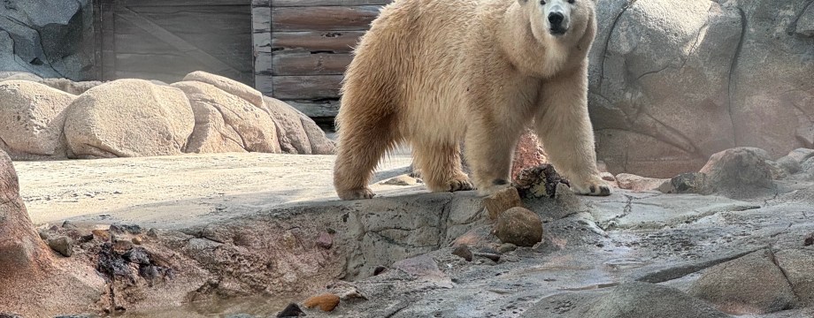 But the highlight of the day was doing a behind the scenes tour of polar bear shores! No phones allowed so no photos of that part but I stood a metre away from a 500kg polar bear. Amazing. The bear in these photos is Mishka and I also met her – she weighs 300kg.