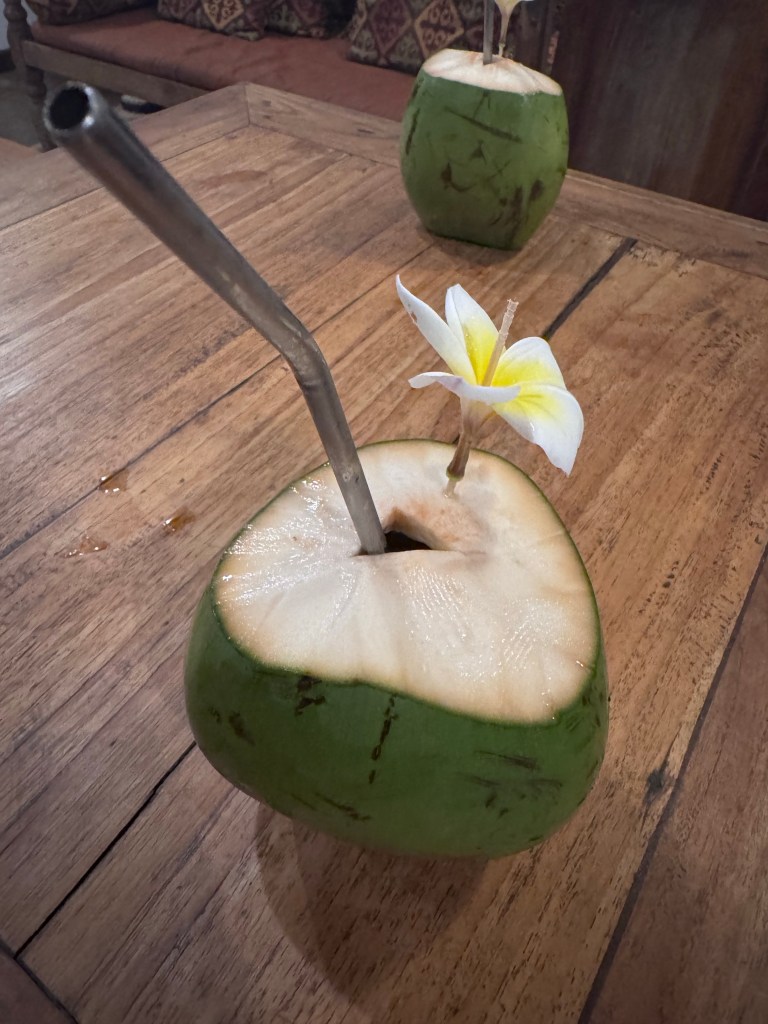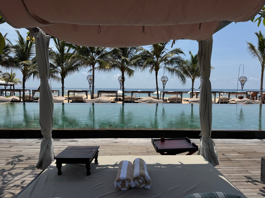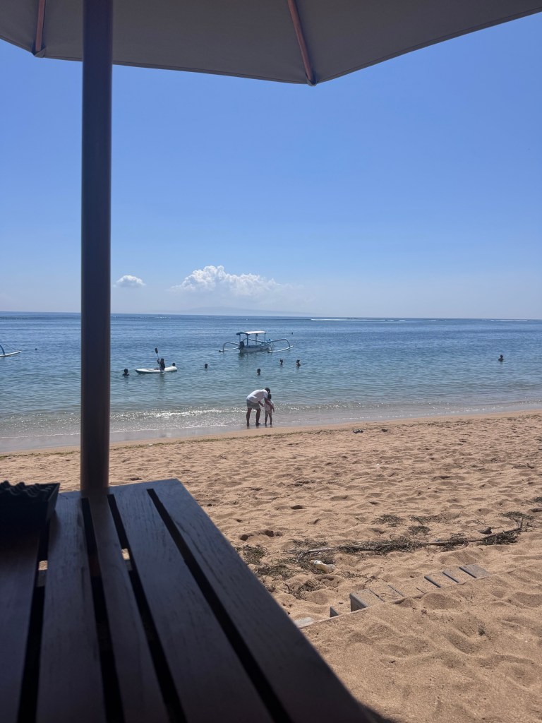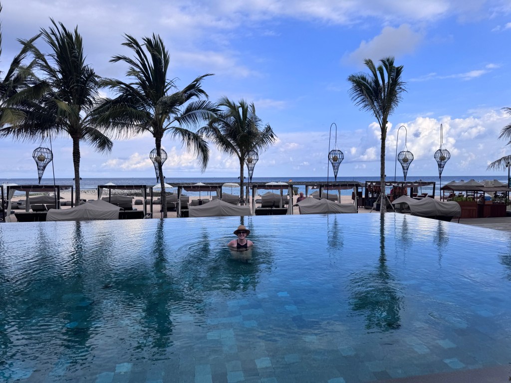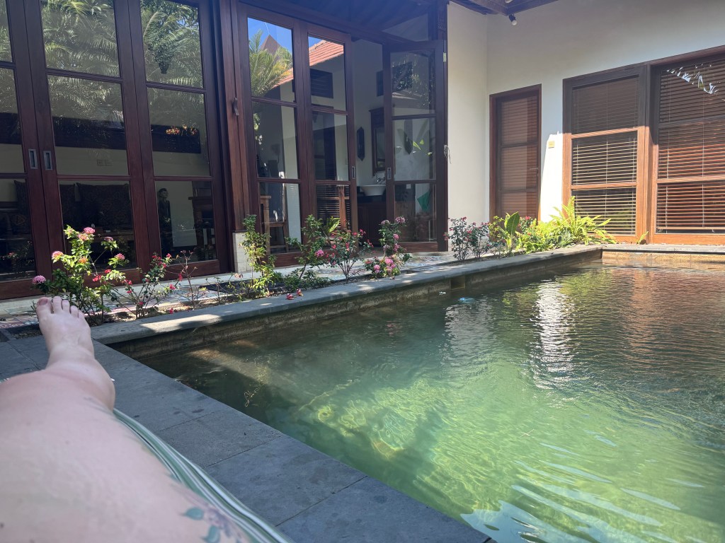 So….just to be clear this place isn’t usually within our travel budget. It’s a one off to celebrate my 40th and my thesis submission for a PhD! We are staying at the Andaz by Hyatt in Sanur for the next few nights in a garden pool villa and it’s just lovely. We are now back on the main beach so everything is within walking distance again. On checkin the room wasn’t quite ready so we lazed by the “adult only quiet pool” and had some snacks.