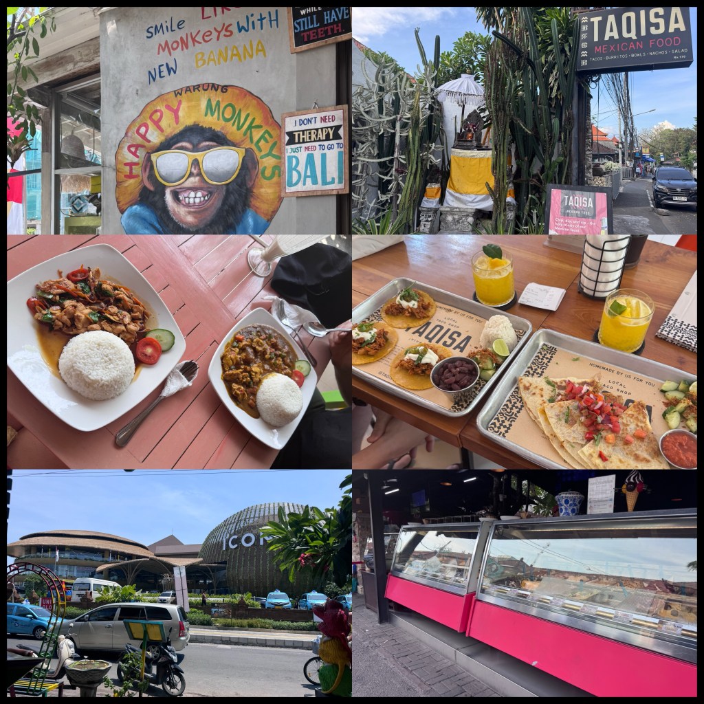 Day 6 was another pool day (definitely embracing villa life) and reading. It felt a lot more humid today so we haven’t ventured too far. We had lunch at Warung Happy Monkey which was some really tasty Indonesian food and went to the supermarket in the brand new, very flash icon Mall. We walked about 2kms to Taqisa for dinner. After dinner we had the famous Massimos gelato! No line for us although apparently people queue for hours for it…which seems a bit ridiculous.
