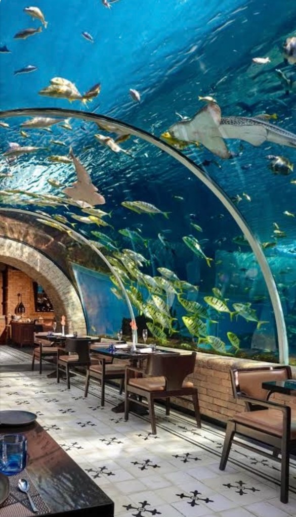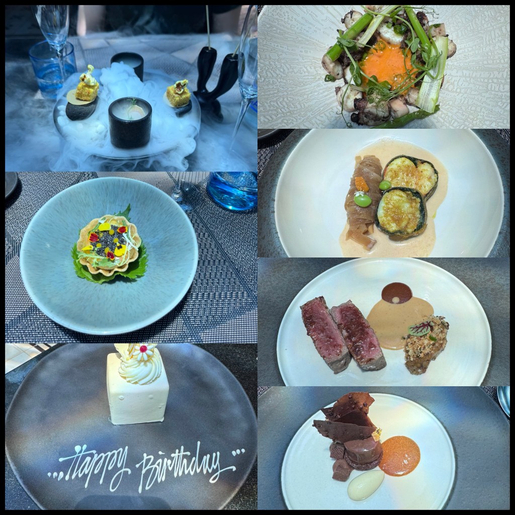 The restaurant we had booked for my birthday lunch was Koral which is part of an absolutely, gigantic (ridiculous) resort. Seriously. Koral has a Michelin starred chef and you need to book a fair way ahead if you want an aquarium tunnel table! It’s a degustation with wines.