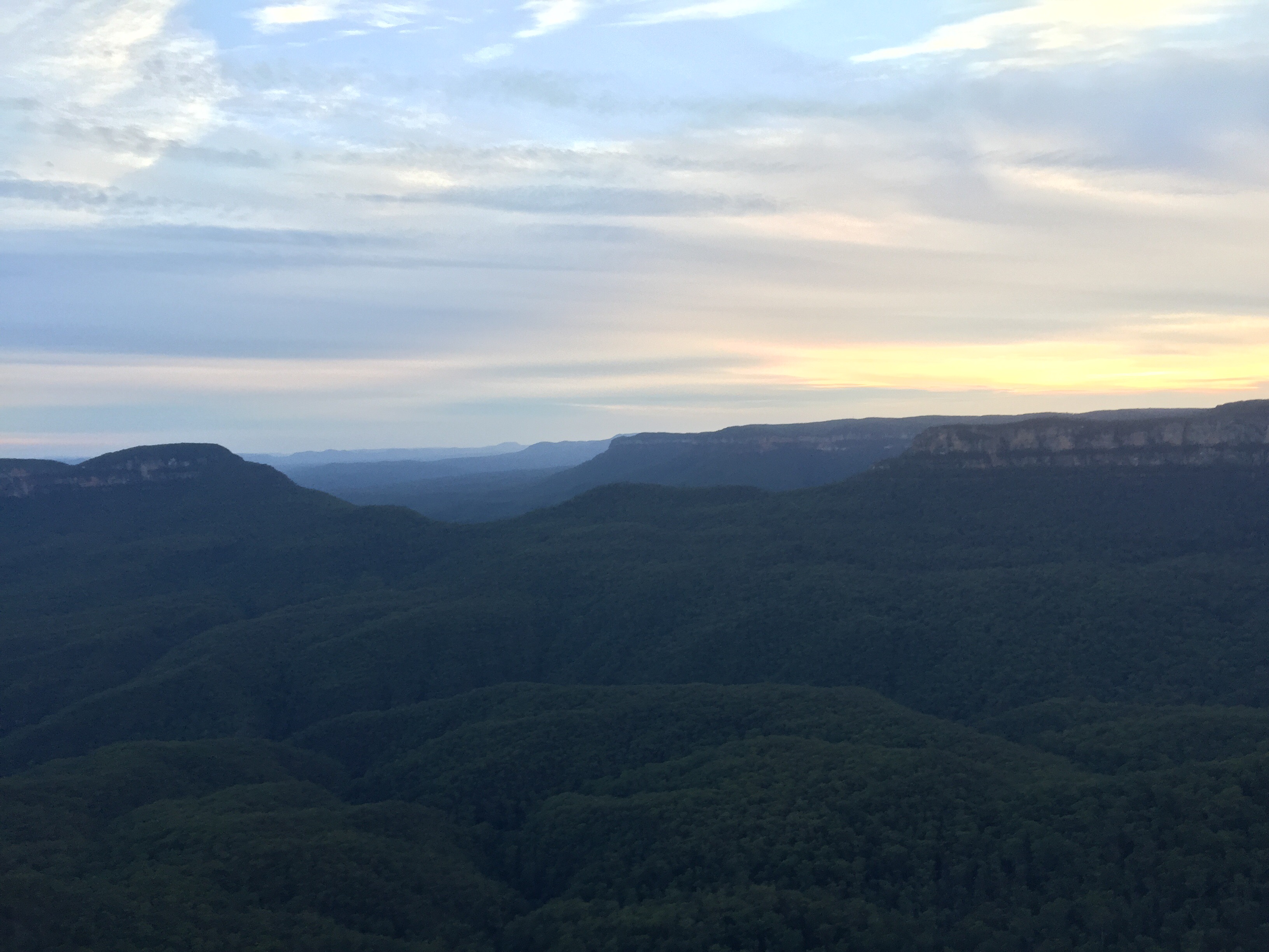 Today started bright and early (7am) with buffet breakfast at the hotel and an early checkout. We then headed back to the echo point lookout for some photos of the mist in the valley.