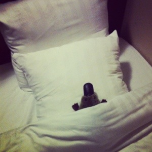 All tucked up in bed while we get ready to hit Amsterdam the first night