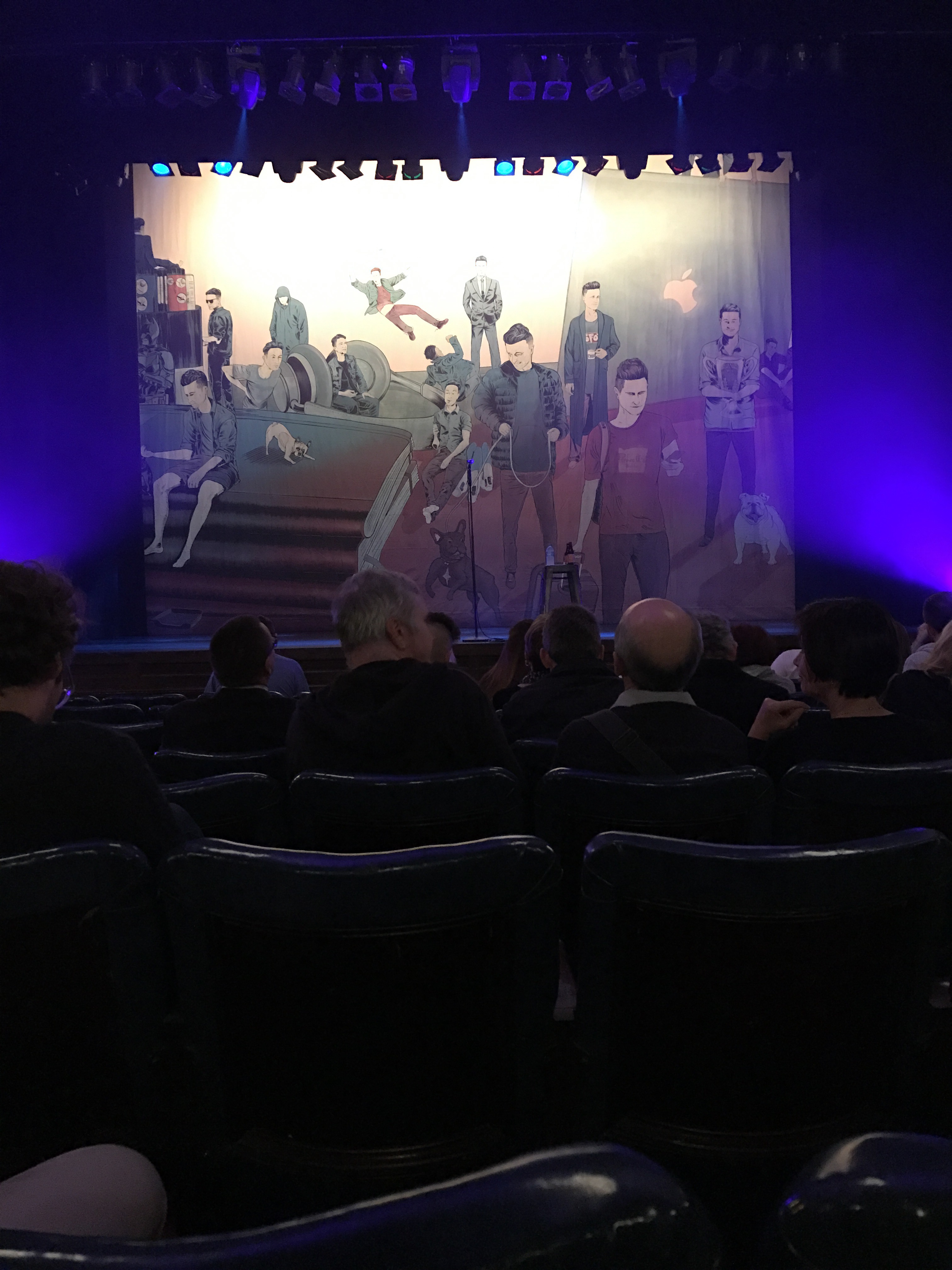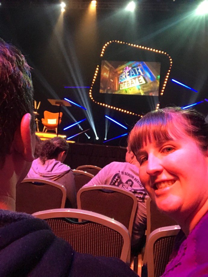 After resting for 1.5 hours at the hotel to let some of the gluttony (and wine – so much good wine) wear off, we headed next door to the Town Hall for our feature comedy event of this whole trip – The Great Debate. Four rows from the front this year, woohoo for early ticket purchasing.