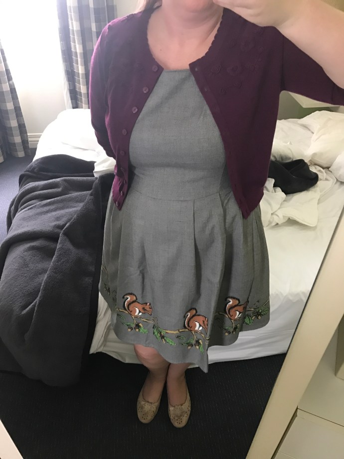 We both got very glammed up and off we went at midday today! My dress had SQUIRRELS on it!! Squirrels!