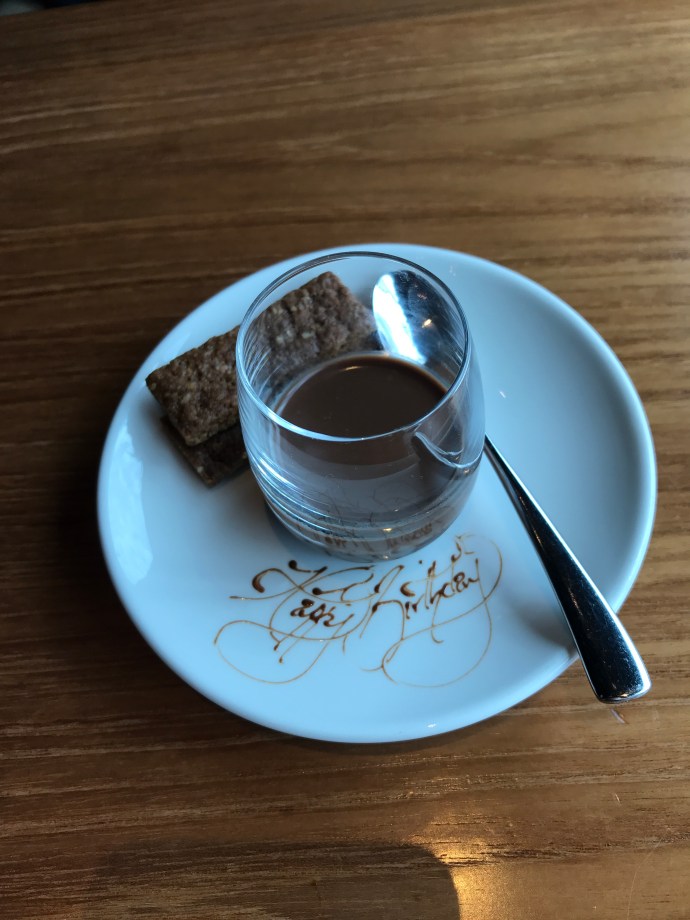 The view was absolutely top notch and B even got a little birthday message on our final farewell snack. The food was very good, although we didn’t feel it was as good as some places we have been to in Canberra which are a little cheaper….however the presentation was clearly a step above what we have ever had before so I suppose it all evens out!