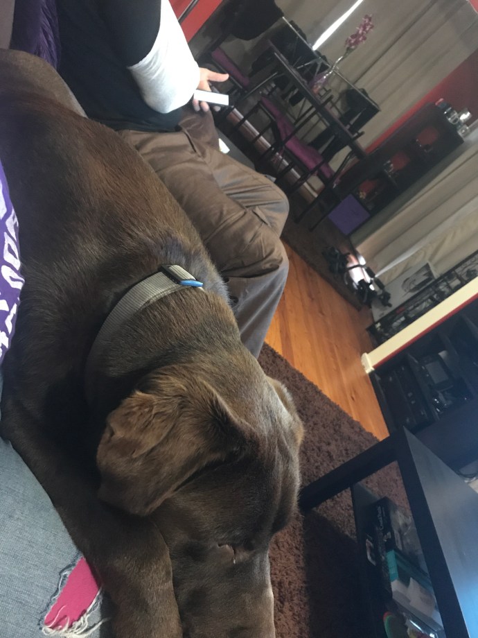 He managed to fall awkwardly and break at least two of the bones in his wrist, probably all of them. More scans and follow ups to come this week….poor fella 😕 we checked out a day early and drove straight back to Canberra so he could have a comfy bed to enjoy his good drugs. Oh, and (carefully controlled) doggy snuggles.