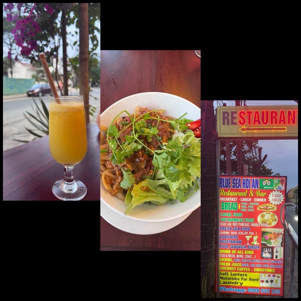 Blue sea Hoi an – south end, very tasty and well price local food. Best Cao Lau we had in the area