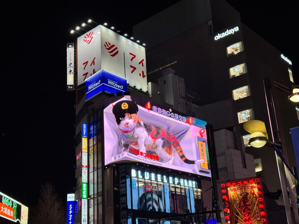 Once known as one of Kabukicho’s more ‘dangerous’ areas, it has transformed into a popular spot for tourists and locals alike…while still having an awful lot of 18+ signs and “girl bars”. We ended up here by accident after visiting the 3D “lord cat”. The giant 3D cat billboard in Tokyo, better known as the “Shinjuku Cat” or “lord cat” and is one of those fun little surprises Japan is known for. It sits on the Cross Shinjuku Building just outside the East Exit of JR Shinjuku Station, and the curved 4K screen makes the calico cat look properly three-dimensional. It stretches, yawns, meows, and peers down at people below, with different routines running across the day, and it pops up every 15 mins between ads.