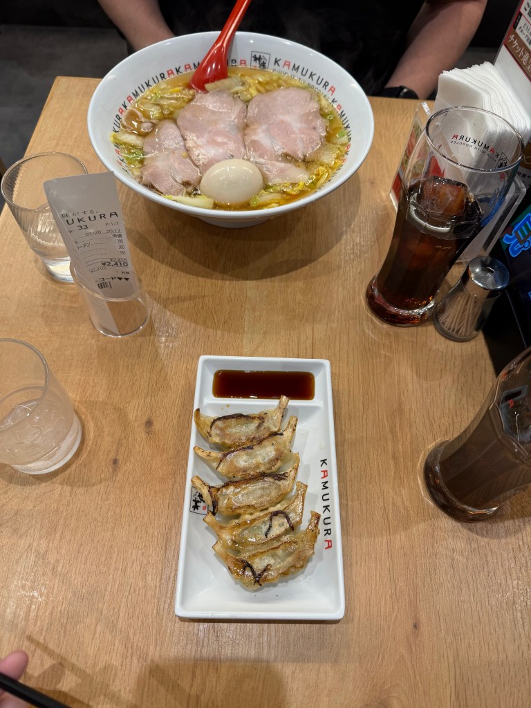 Japanese food: 2 x ramen, 1 x gyoza, vending machine snaaaacks!!