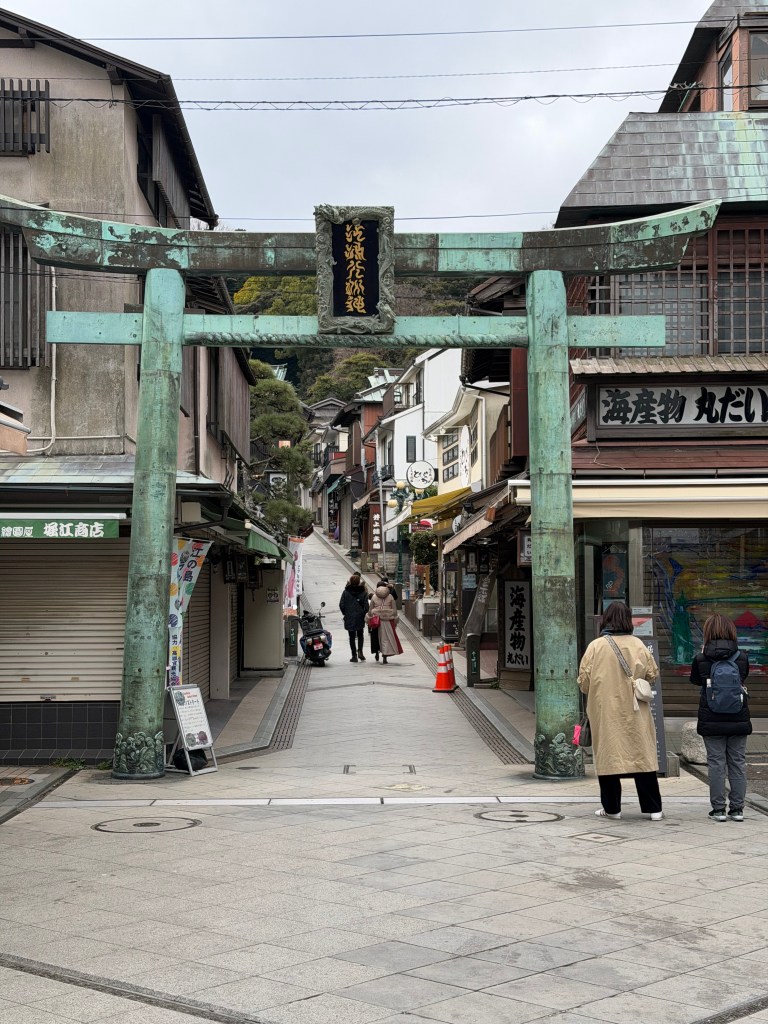 Enoshima Island was a beautiful first stop. It has that relaxed coastal feel, little streets you can wander, and plenty of spots to stop and take in the ocean views. The shrines are tucked into the greenery and feel unexpectedly peaceful for somewhere that apparently is so popular in peak times. And on a clear day, you can even spot Mt Fuji in the distance…sadly our day wasn’t clear.