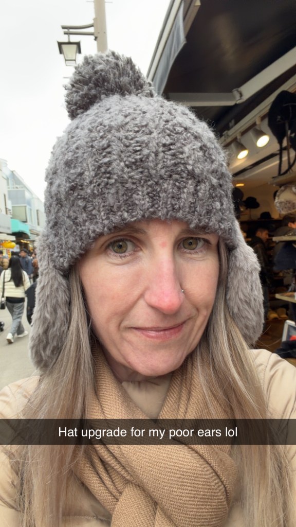 I was also very happy to get a new beanie here with proper ear coverage as I’m struggling with the cold!! It was 5C and snowed today….we aren’t even officially at the snow yet and I’m freezing.