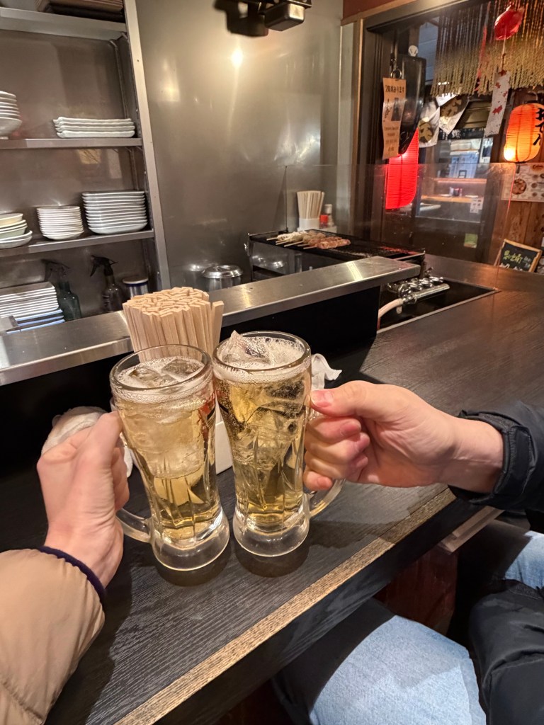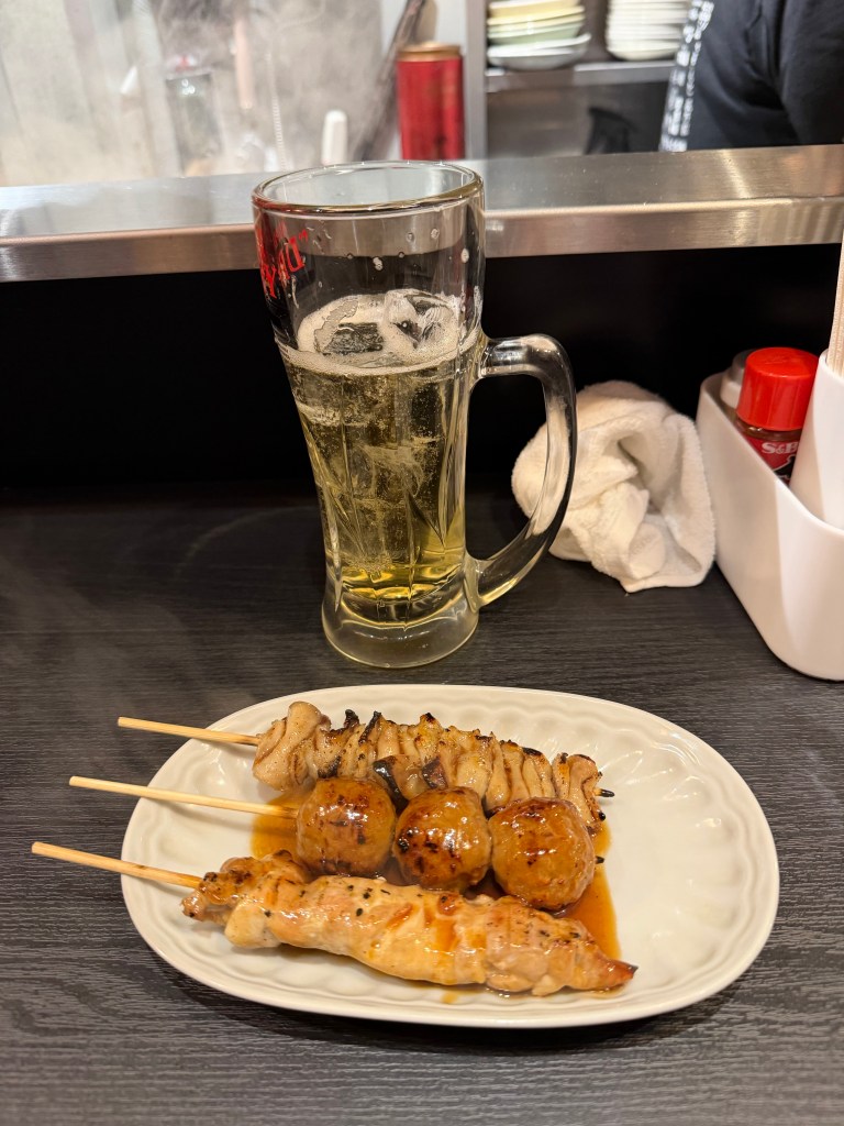 The bus dropped us back in Shinjuku around 5:30pm and this time we were on the same side as Omoide Yokocho skewer alley (memory lane). We walked up and down to check the whole alley out as it wasn’t too busy, then we settled on a small bar that still had seats at the front counter. You have to squish in tight and they cook the food in front of you! We had chicken yakatori and a beef one as well….plus delicious plum umeshu with Soda. It’s also normal to have a seat charge here (about $3 each) so don’t panic about it being a bar scam if they have one when you visit.