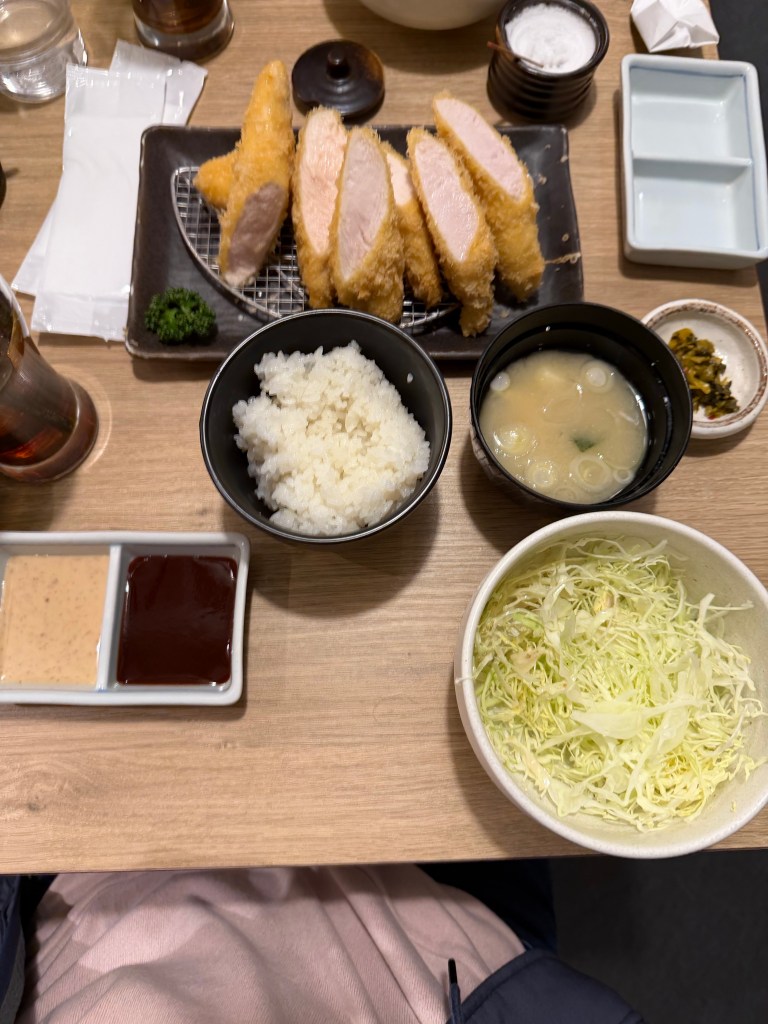 We slept in today after our big day trip yesterday and then headed to Imakatsu Akasaka which is a very well known katsu place walking distance from our hotel. This is their local (smaller) store which often has lines but we got in just before it got busy at about 11:45am. The katsu chicken was sooooo juicy! And delicious. And the set comes with refillable cabbage (use the white sauce on that) plus rice, pickles and miso soup. Yum yum yum.