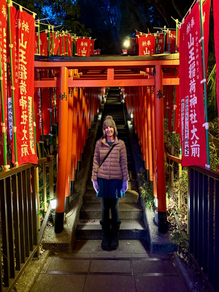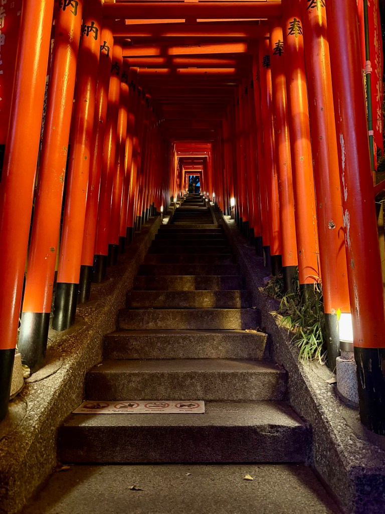 The shrine is apparently lovely during the day but we wandered over after they had closed to see the 90 Tori gates at night time.