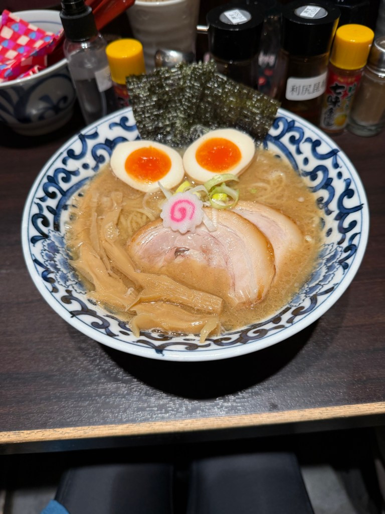 We were the only non Japanese people in the line and in the restaurant and we were seated in about 10 mins so it was quick. About 5 mins later our “original ramen” came out. It was 1290 yen and was really good pork ramen. The broth was delicious.
