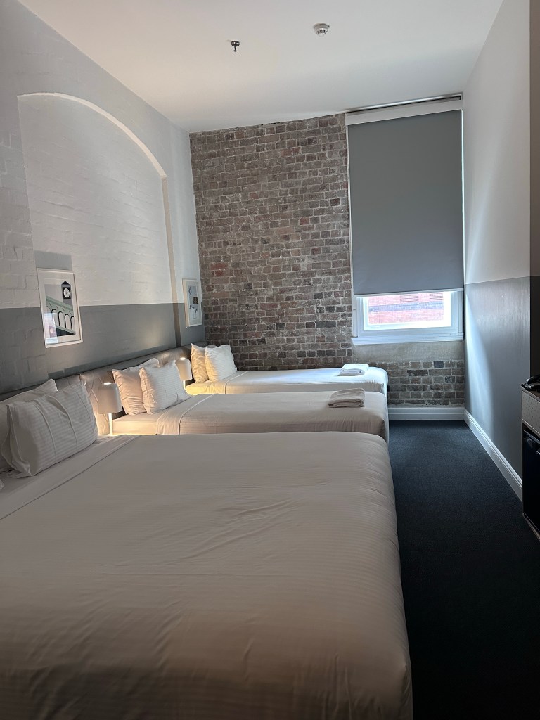 I flew Qantas and the trip over was uneventful. On arrival I saved the Uber fare ($35-$40) and instead caught the train ($19) from the airport to central and walked 5 mins to Ultimo Hotel. The hotel is okay…it’s very, very noisy as it is opposite paddy’s markets and Chinatown. From 8-10pm I listened to buy racers and party people shouting, then at 10pm I realised my room was above an all night karaoke bar. I asked to be moved (to their credit, they did this in under 10mins) and then had a much smaller room above a laneway full of restaurants throwing out trash, an alarm that never turned off and drunk people. So ear plugs are your friend in this place!