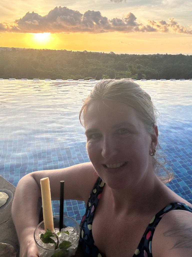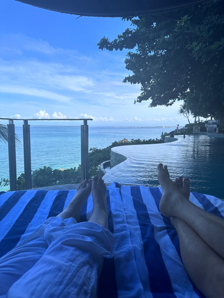 So….just to be clear this place isn’t usually within our travel budget. It’s a one off to celebrate my 40th and my thesis submission for a PhD! We are staying at the Andaz by Hyatt in Sanur for the next few nights in a garden pool villa and it’s just lovely. We are now back on the main beach so everything is within walking distance again. On checkin the room wasn’t quite ready so we lazed by the “adult only quiet pool” and had some snacks.