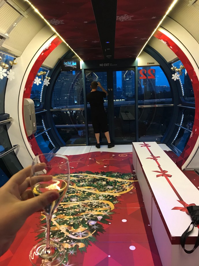 ⁃ Most things didn’t have too much of a line up in late Dec/early Jan. A lot of the reviews and online comments I read suggest we got lucky with both timing and weather in regard to this. We had very short lines for the pandas at River Safari, Gardens by the Bay, cloud forest, universal studios and other things. We also got our own carriage on the Singapore Flyer champagne flight! That was seriously an amazing experience for $78 each. The only time we really saw huge lines was bloody Marina Bay Sands.