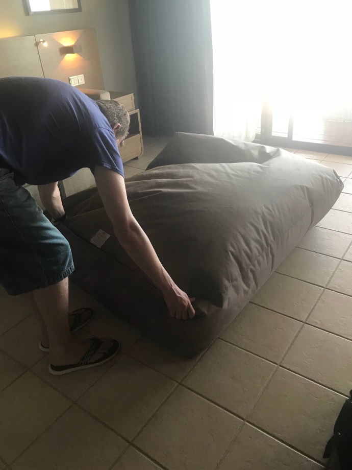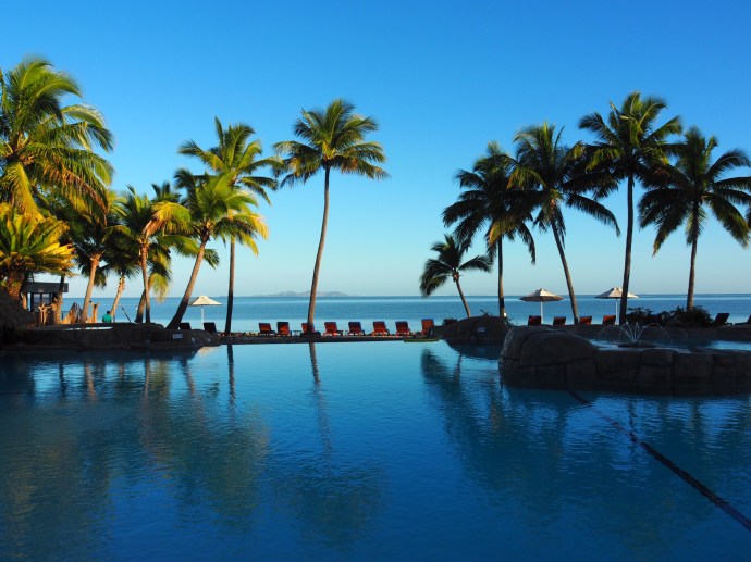 We then nabbed a beanbag right on the beach and from 10am – 2:30pm just….lazed around. We went in the pool, took advantage of the swim up bar, sat in the spa, read books and drank cocktails.