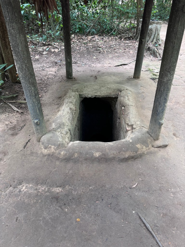 After breakfast, our local guide collected us at 7:30am and we were off to visit the Cu Chi Tunnels, which are 70 kilometers North West of Ho Chi Minh City. We went early as it was going to be a very hot day…and crowds suck. I am still not coping well with the long drives and feel nauseous a lot because of the stop start approach to driving…even Dramamine can’t save me!