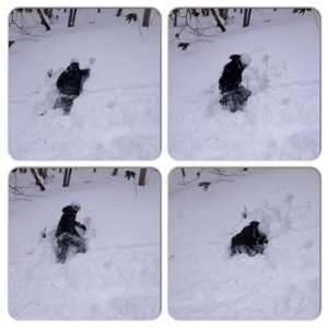 By lunch time my legs were starting to shake so we stopped for food. Hanazono was extremely busy because 6 out of 10 lifts were closed on the mountain so people had limited options to go up higher (too windy). Here are some photos of both of us being complete idiots on soft powder: