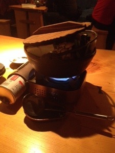 We are what they are famous for at his place, which was a hot pot. Ours was a spicy pork and vegetable one and it was delicious. They put all the raw ingredients on the little hot plate and then it boils and cooks it all.