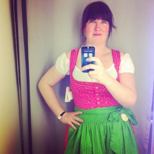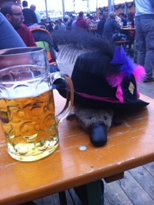 What a day! Up at 7am and into Munich so some of us could go on a bike ride. I am most definitely NOT a bike person so we explored on foot and did a looooot of shopping…mainly for cute Oktoberfest clothes! Now I had already made the executive decision that there would be no dress buying on my behalf as they cost in excess of β¬100 and I’d rather use that for beer! I bought ab adorable hat that you can see in some of the photos instead. I did sneakily try one outfit on and take a photo (which you are expressly not allowed to do):