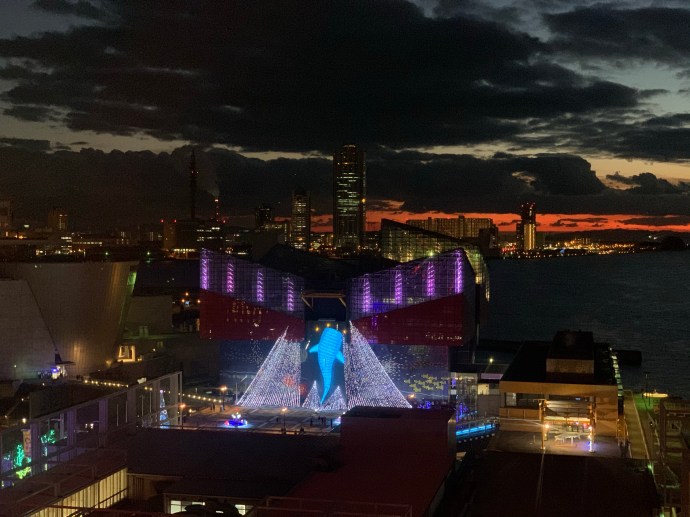 Our hotel in Tokyo is in Akasaka (considered a bit of an upmarket district quite close to the city centre) and is a 2 min walk from Akasaka-Mitsuke metro station. The hotel is called Hotel Risveglia Akasaka and I picked it because it was close to the same price as APA hotels but definitely not an APA. We previously stayed in an APA hotel in Tokyo and the room was so small B couldn’t stand up straight or lay on the bed straight! So APA are cheap rooms but not great if you’re 6ft tall. This room is still small – only 16 metres square – but it has enough space to move around in and a full shower. It also has a gloriously SOFT bed! Our room looks over a cute little alleyway.
