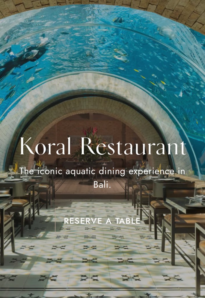 We haven’t booked any big day trips as this is definitely a “read books and lounge in pools” type getaway. With that said, we will be in Bali for my birthday so we are going to catch a Grab to Nusa Dua and check out Koral Aquarium Restaurant + reef beach club on that day.