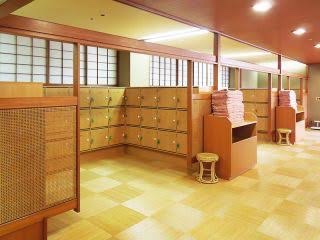 4. You will enter a small change room where there will either be lockers or baskets to put your stuff in. This is where you strip off EVERYTHING. You must be totally naked. There are no bathers allowed in the onsen. You strip off all your clothing here and then enter the onsen with just your towel (and locker key if one is available).