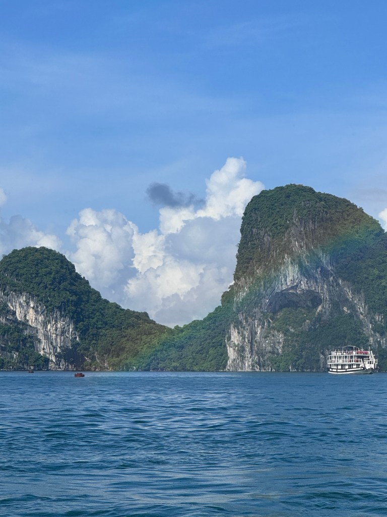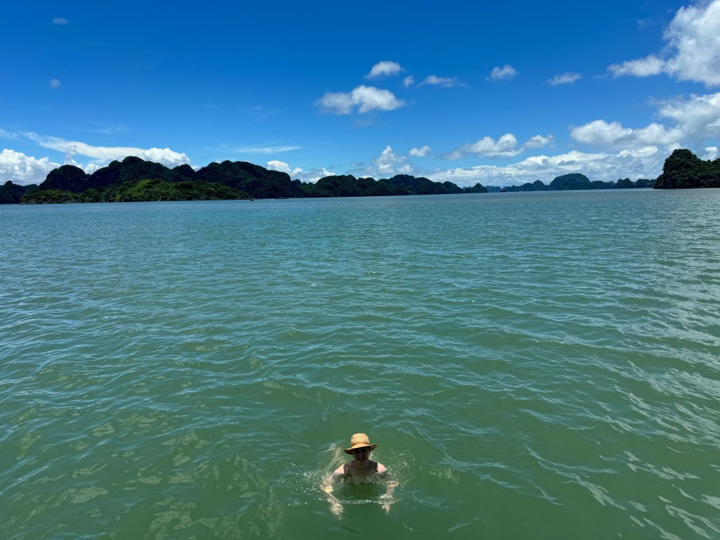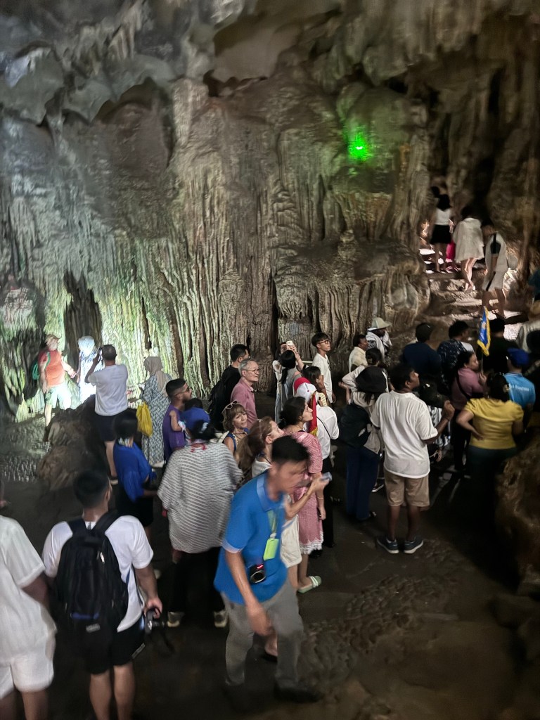 Between 7:30 and 8am our group split into those returning to Ha Long Passenger Terminal after 1 night and people like us (across multiple boats) who are staying 2 nights on board. We hopped on a smaller “day boat” with a mixed group to transfer to Lan Ha bay. Lucky us had a group of Australian backpackers on board…behaving exactly as the stereotype suggests. Sigh. On the way to Lan Ha Bay we stopped at Bo Hon Island and had the option to kayak at Dark and Bright caves area. This was a no from me due to the twisting. We got to walk through the cave on Bo Hon island instead which was really cool…and full of bats! Then sit for a little at a beautiful beach.