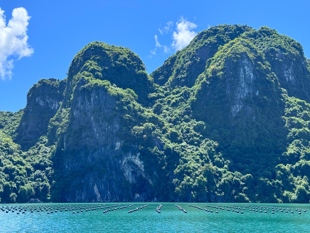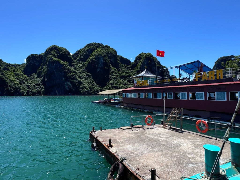 Lunch was served on the boat at 12:30 before we started the 1 hour return to Ha Long bay. We had one additional short stop at the Pearl Farm Exhibition Center and Museum to learn how to raise a pearl farm and harvest pearls. It was hugely touristy /sales focused and you could tell most of the people on the boat were not impressed with it and would have much preferred the beach visit. In addition, they left us there for an hour! I was pissed.