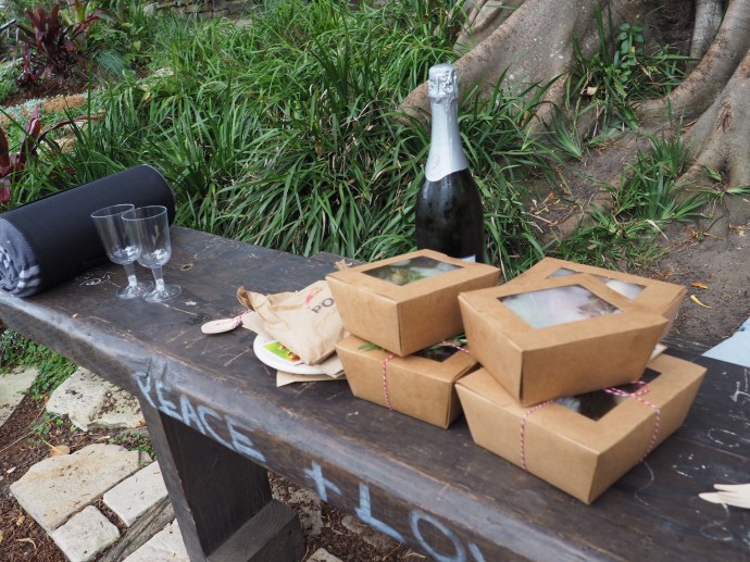 Our picnic was ordered through Pop Up Picnics in Sydney and it was DELICIOUS! They delivered it to the picnic location (we supplied the bubbly) and were very accommodating about my shellfish allergy. It came with a rug and in a handy carry box that converts to a table if needed