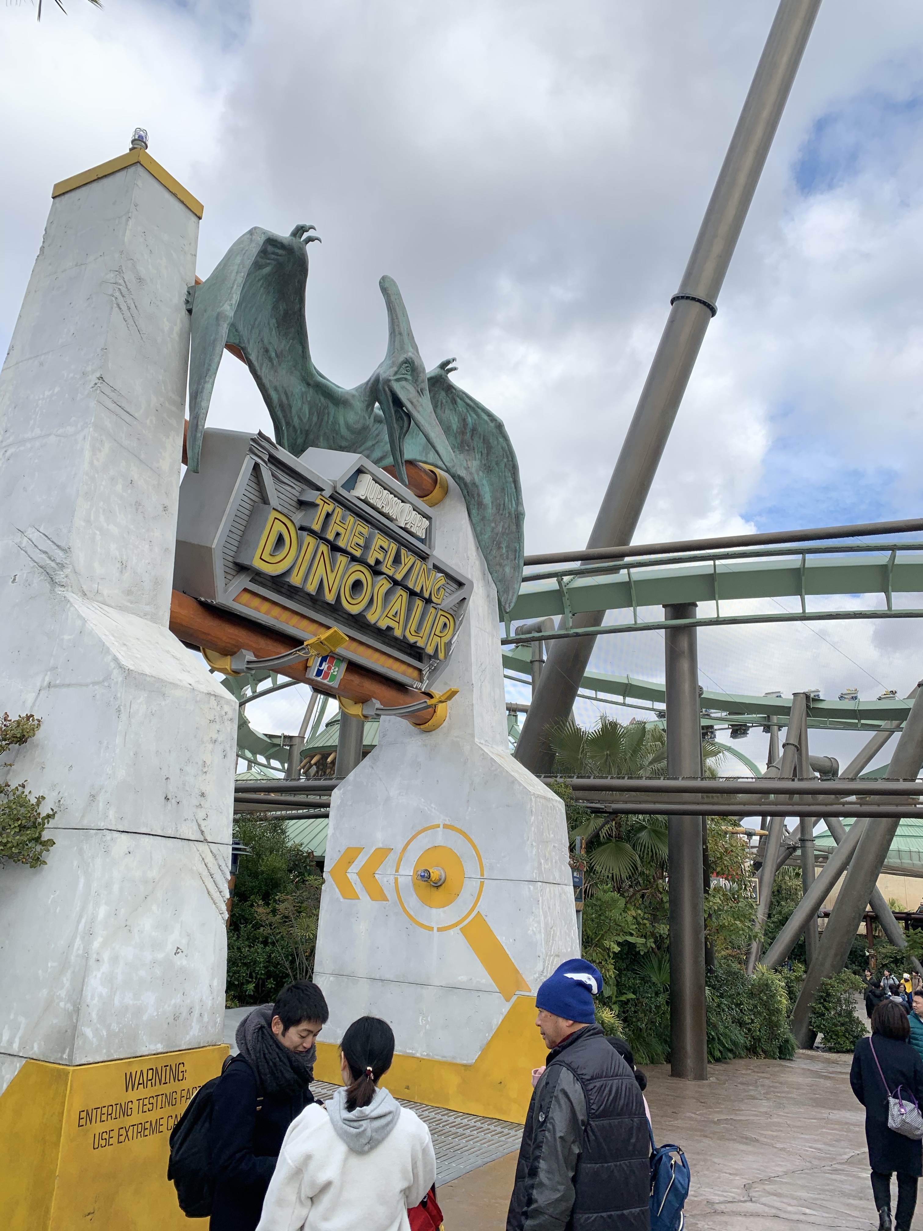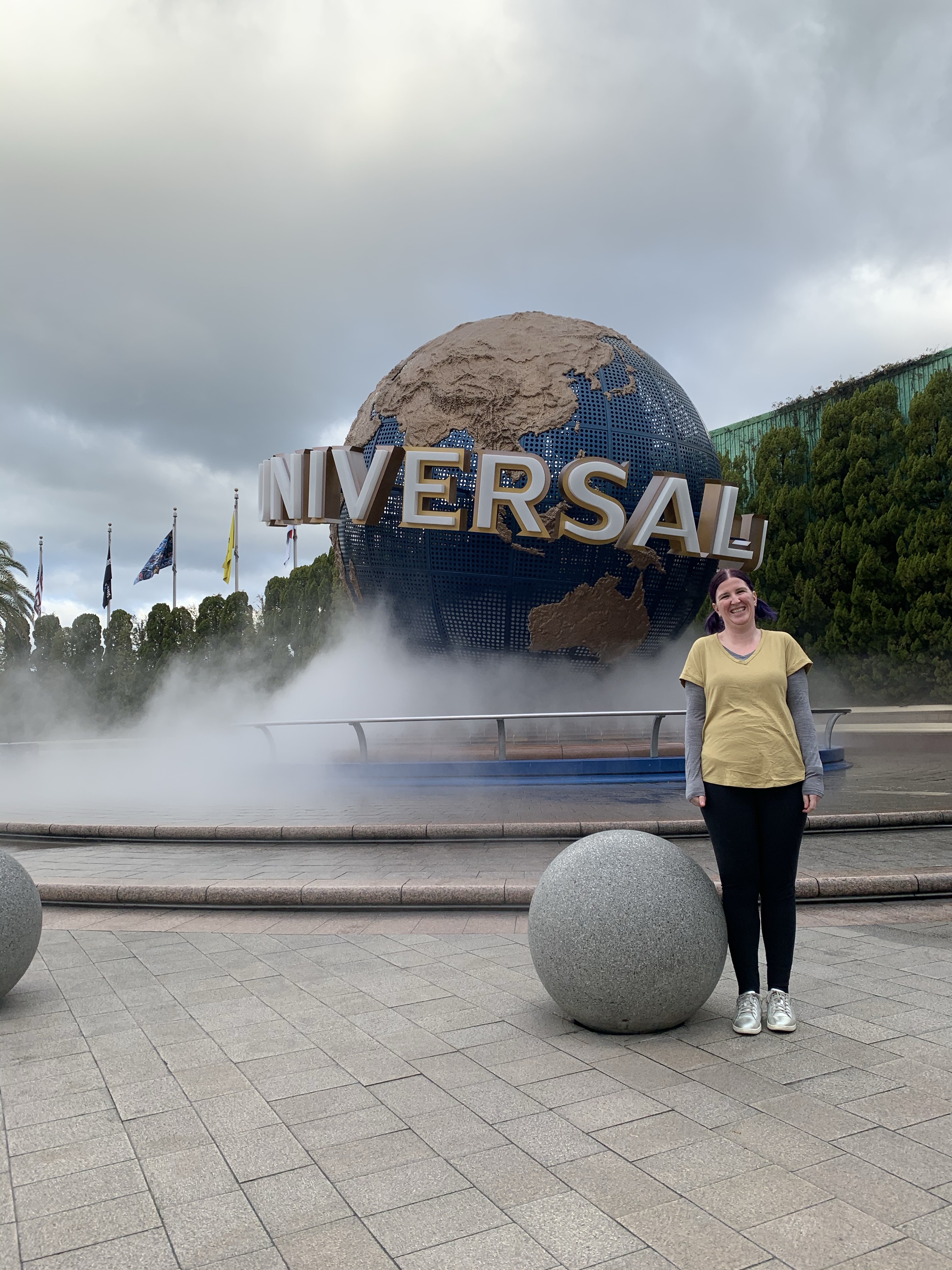 The weather was not raining (phew!) but it was cloudy on/off and the wind chill was noticeable. We took one backpack with extra jumpers, tickets, water etc in it knowing we could buy a locker to put our things in for each ride so we could go on them together as this is what we did in Singapore at Universal Studios. It was a 5 min walk + 16 min JR Osaka loop train trip to get there from our accomodation in Umeda.