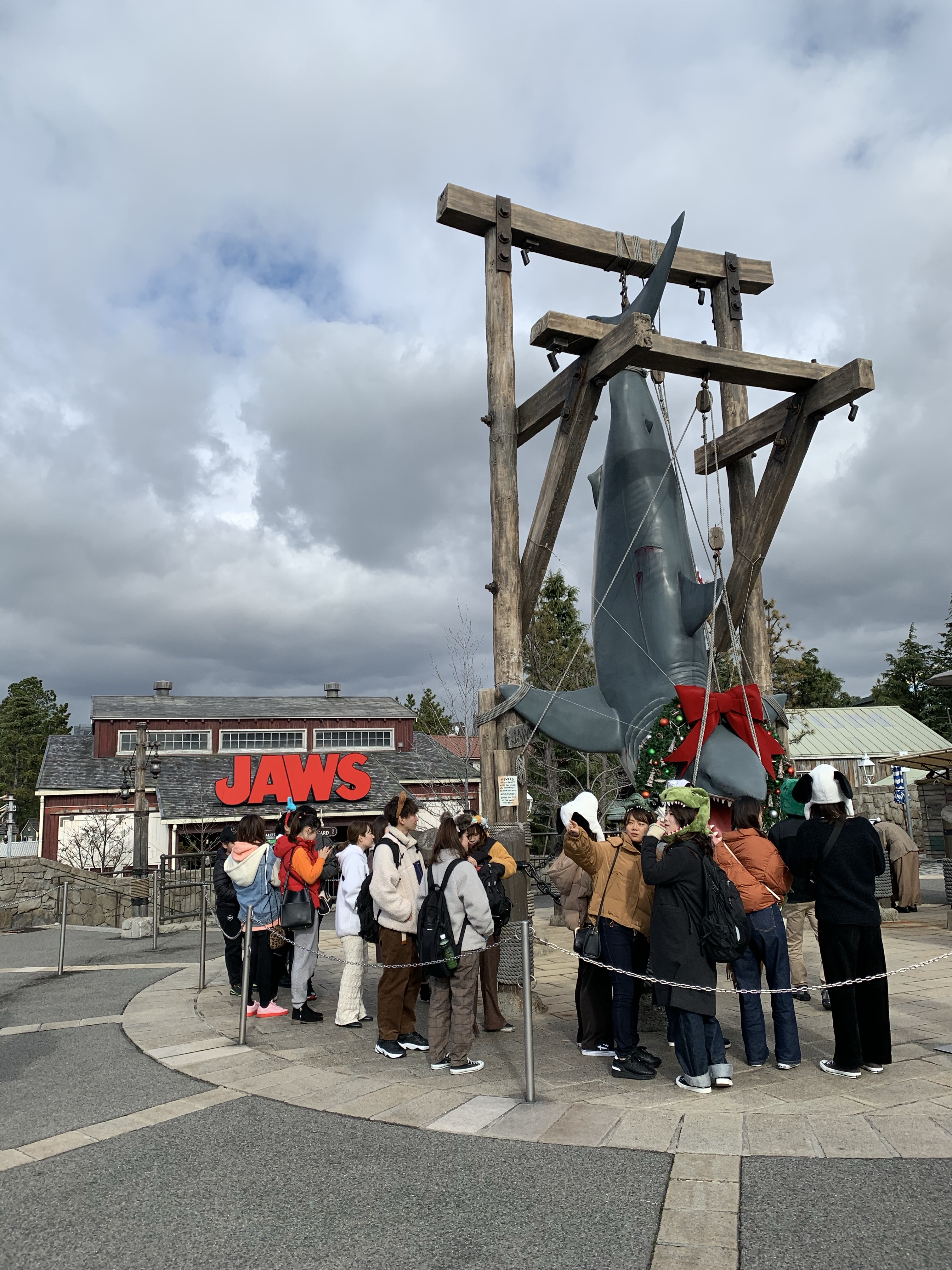 We also went on Jaws which was less roller coaster like but still good fun. The ride is all in Japanese but you get the idea pretty clearly – oh let’s go on a lovely boat ride in this quaint small town….SHARK!