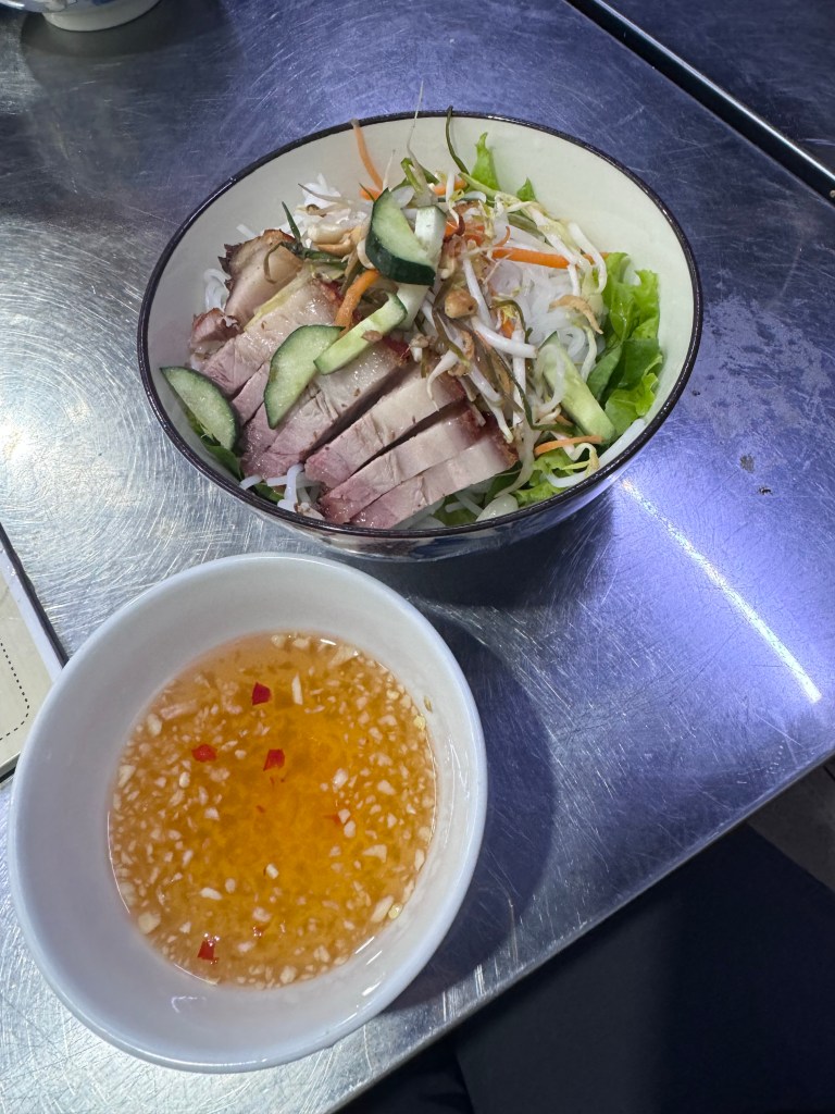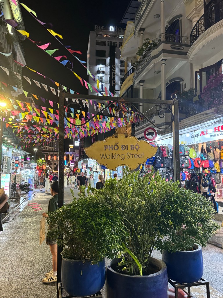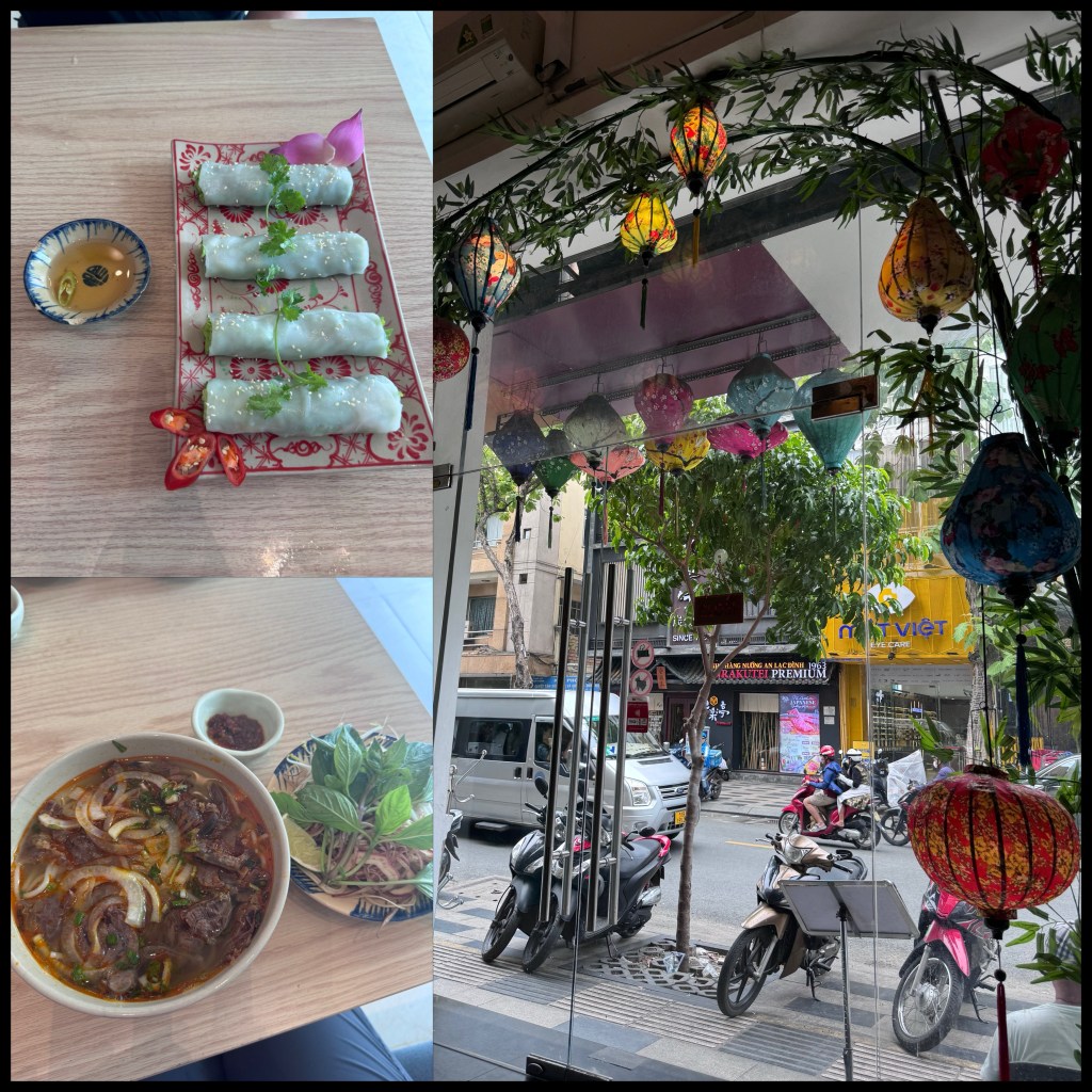 From here we walked another few minutes to the start of walking street. We followed a restaurant suggestion from both the guide and hotel staff to try out Madame Thu which was really tasty. B got to knock another Hue specialty off the list with Bun Bo Hue. He also got stalked by a school group of 5-6 year olds who desperately wanted to be his best friend 😂