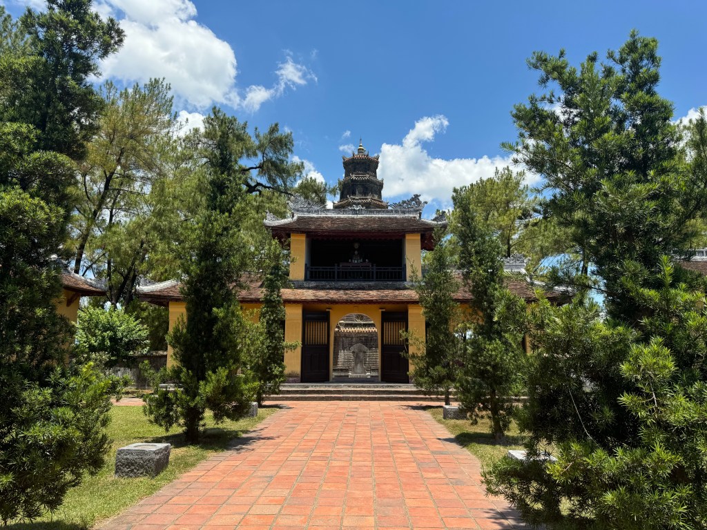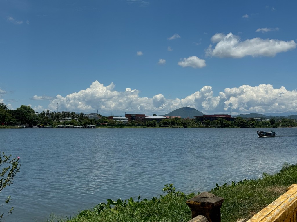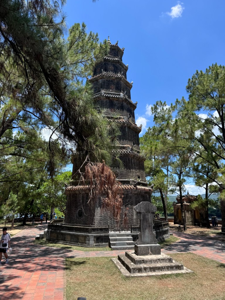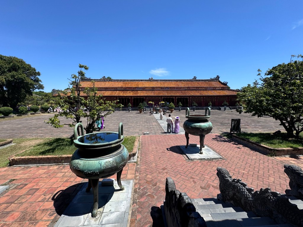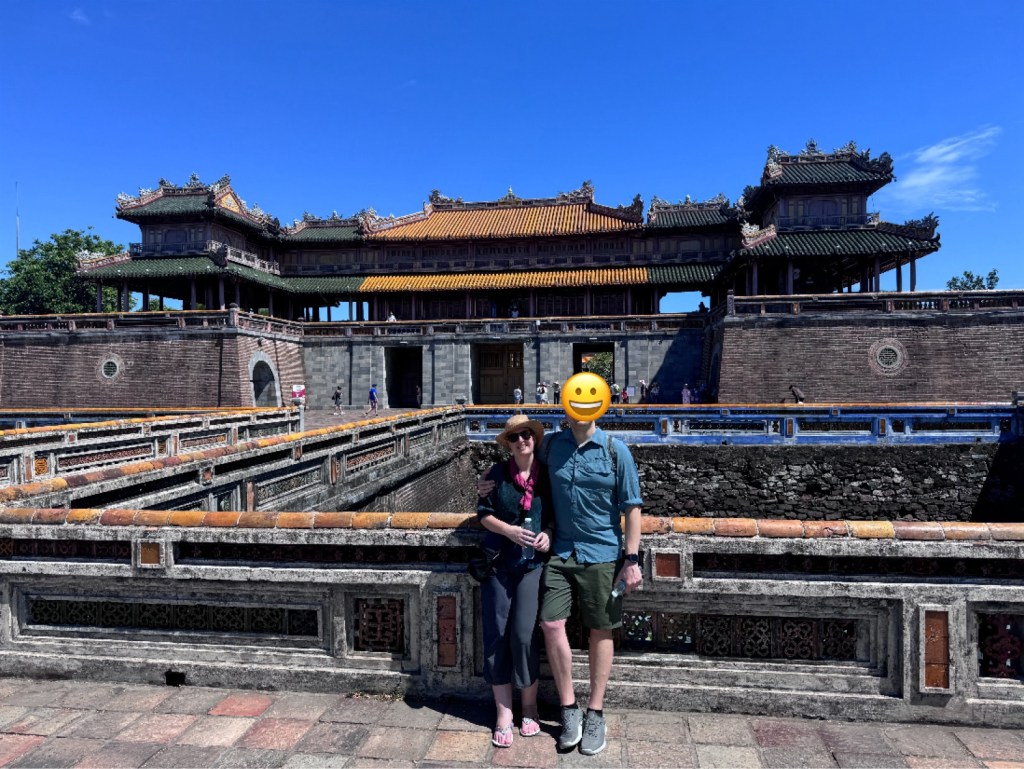 Our new guide (Mr Hung) agreed to a sleep in today before we were off to explore the ancient architecture Hue is known for. We visited the Imperial Citadel in Hue. Our wandering (in absolutely insane heat and humidity) included the Flag Tower, Ngo Mon Gate, Nine Dynastic Urns, Nine Holy Cannons, Thai Hoa Palace and Forbidden Purple City (Tu Cam Thanh). It’s a large area to explore and really interesting – the history of the kings and the French occupation is particularly fascinating. It is also quite different to what we have seen elsewhere in Vietnam! You will notice I look a bit damp in some of the pictures…I literally dumped a bottle of water over my head to try and regulate my temperature 😂 it didn’t work haha.