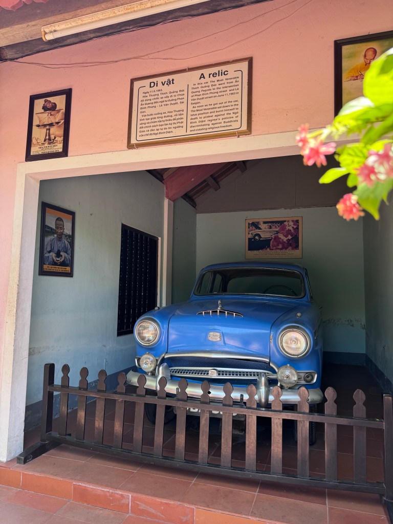 We also took a dragon boat upstream on the Perfume River to the Thien Mu Pagoda (means the “Heavenly Lady”) which was built lt in 1601. Thien Mu Pagoda is one of the oldest religious buildings in the country.