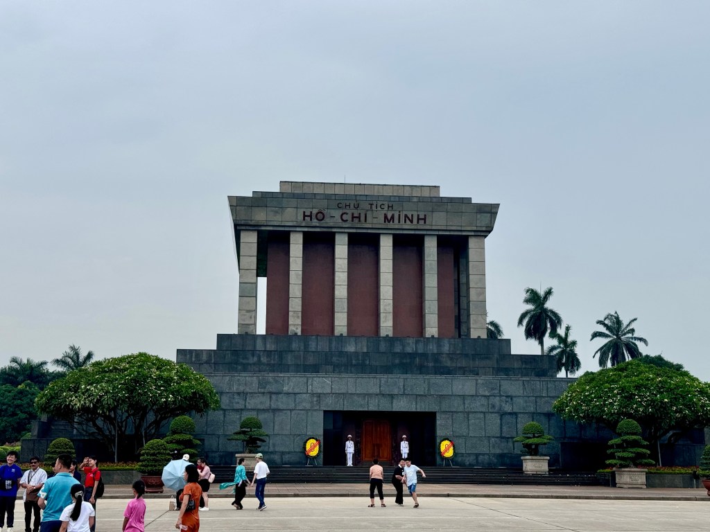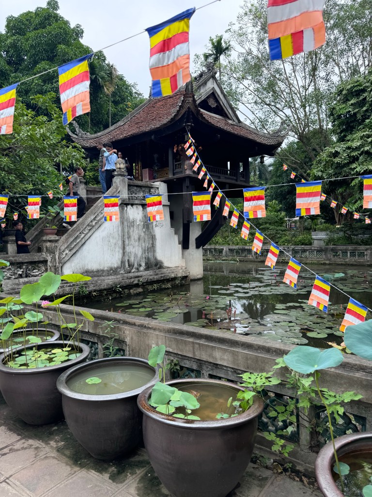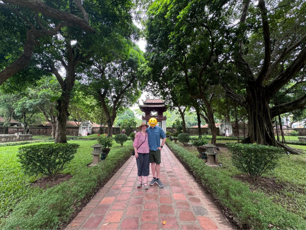 We then visited Ho Chi Minh’s Mausoleum (outside only because the site is closed for maintenance until 15 August each year) and saw the headquarters of the Vietnam Communist Party which is ipposite. We also wandered around “Uncle Ho’s” house on stilts and beautiful garden. Near the mausoleum is the One Pillar Pagoda, an 11th-century wooden temple built on a single stone pillar in the water. It was designed to resemble a blooming lotus and is said to be a just visit for couples with fertility issues. We saw a lot of women there rubbing the statues for good luck