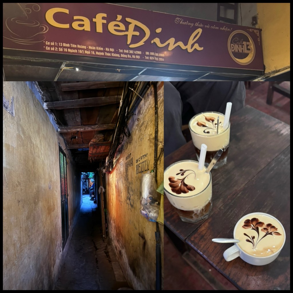 We tried a variety of street foods including Bún chả ( Grilled pork with noodle) which was made famous by Obama on his visit here, Phở bò,gà (a version of Pho which was dry chicken noodle soup), Bánh cuốn (Steamed rice paper rolls), Bánh Mỳ (Vietnamese sandwich) but Hanoi style with dipping bread, Hoa quả dâm (Mixture fresh-fruit with condensed milk cream and coconut icecream) and Cafe trứng