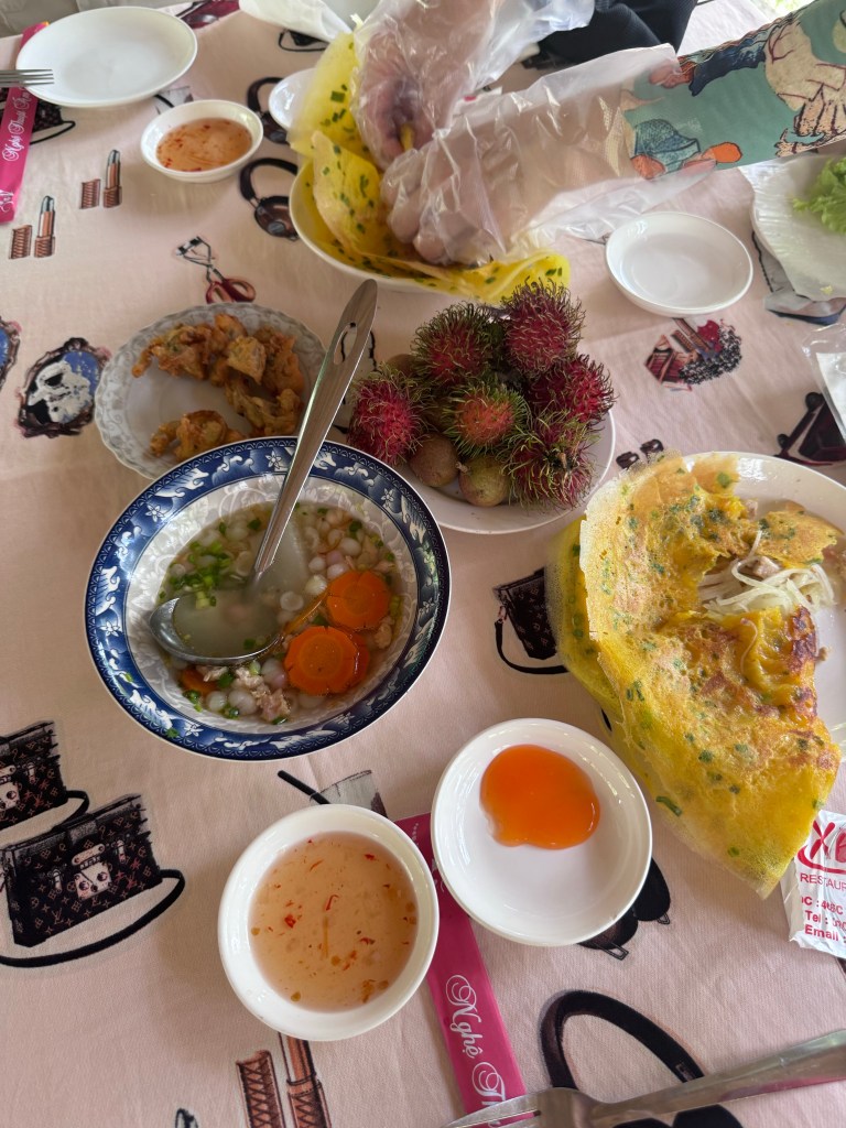 We rejoined our driver to go to Can Tho city which was another 3.5hrs driving and included a slightly nerve racking car ferry. We are staying one night at an ecolodge here which is locally run and pays living wages to locals. I won’t name it as unfortunately our experience hasn’t been amazing – but that was influenced by a very short notice change due to their renovations running over. So, I don’t think it’s reasonable to take this as an accurate reflection. The view has helped soften the blow of no food for me lol